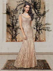 Wholesale Mermaid / Trumpet Mother of the Bride Dress Luxurious Elegant Scoop Neck Floor Length Lace Sleeveless with Beading Appliques - As picture 1 / US 2 / UK 6 / EU 32