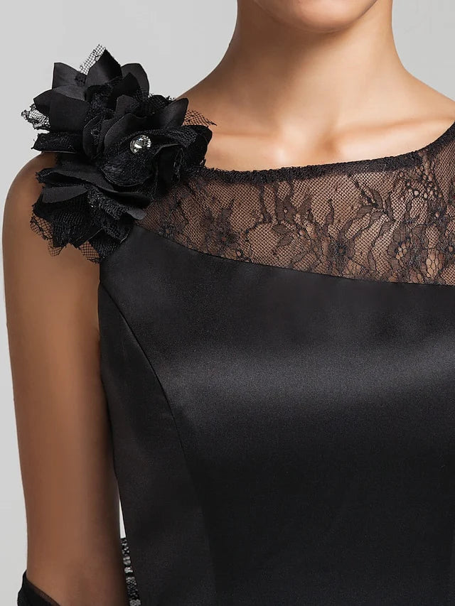 Wholesale Mermaid / Trumpet Mother of the Bride Dress Wrap Included Jewel Neck Floor Length Satin Lace Sleeveless with Lace Buttons Flower - US 2 / UK 6 / EU 32