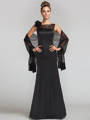 Wholesale Mermaid / Trumpet Mother of the Bride Dress Wrap Included Jewel Neck Floor Length Satin Lace Sleeveless with Lace Buttons Flower
