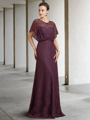 Wholesale Mother of the Bride Dress Elegant Jewel Neck Floor Length Lace Short Sleeve with Pleats