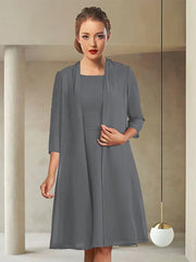 Wholesale Mother of the Bride Dress Elegant Jewel Neck Knee Length Chiffon Length Sleeve with Ruching - US 2 / UK 6 / EU 32