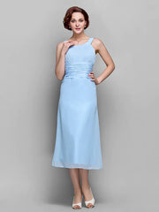Wholesale Mother of the Bride Dress Elegant Straps Tea Length Chiffon Sleeveless with Ruched Draping - US 2 / UK 6 / EU 32