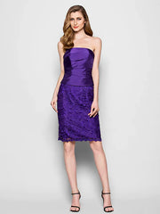 Wholesale Mother of the Bride Dress Strapless Knee Length Lace Taffeta Sleeveless with Lace Pleats
