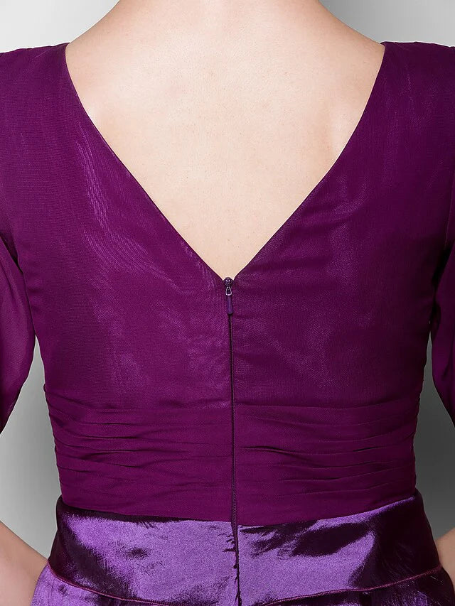 Wholesale Mother of the Bride Dress V Neck Knee Length Chiffon Taffeta Short Sleeve with Criss Cross
