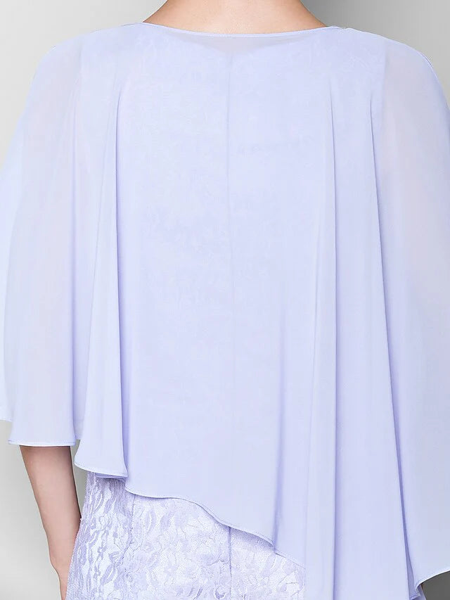 Wholesale Mother of the Bride Dress Vintage Inspired Jewel Neck Knee Length Chiffon Lace 3/4 Length Sleeve with Lace