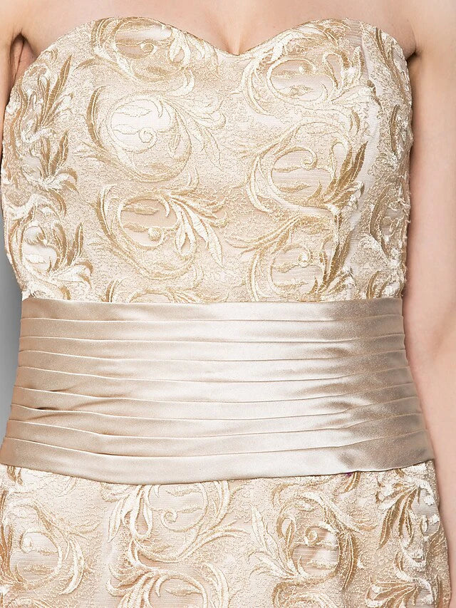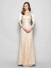 Wholesale Mother of the Bride Dress Wrap Included Sweetheart Neckline Floor Length Lace Satin 3/4 Length Sleeve with Sash Ribbon Ruched - US 2 / UK 6 / EU 32