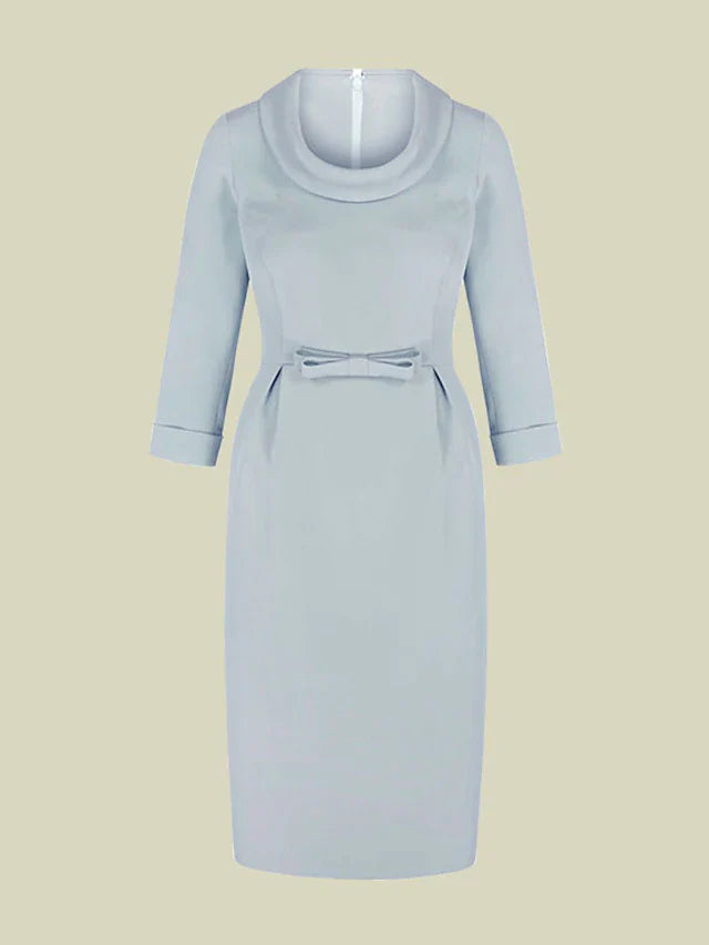 Wholesale Sheath / Column Mother of the Bride Dress Elegant Jewel Neck Tea Length Italy Satin 3/4 Length Sleeve with Sash / Ribbon Bow(s) - US 2 / UK 6 / EU 32