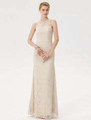 Wholesale Sheath / Column Mother of the Bride Dress Elegant See Through Illusion Neck Floor Length Lace Sleeveless with Crystals Beading