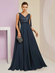 Wholesale  Sheath / Column Mother of the Bride Dress Formal Party Elegant V Neck Floor Length Chiffon Lace Sleeveless with Pleats Sequin