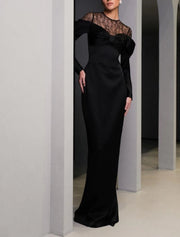 Wholesale Sheath / Column Mother of the Bride Dress Formal Wedding Guest Elegant Party Scoop Neck Floor Length Satin Lace Long Sleeve with Bow(s)