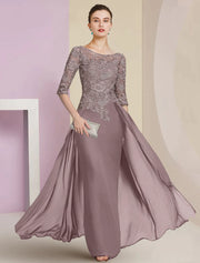 Wholesale Sheath / Column Mother of the Bride Dress Formal Wedding Guest Elegant Scoop Neck Floor Length Chiffon Lace Half Sleeve with Appliques