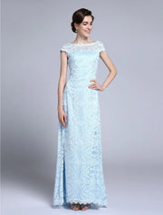 Wholesale Sheath / Column Mother of the Bride Dress Open Back Bateau Neck Floor Length Lace Short Sleeve No with Lace - US 2 / UK 6 / EU 32