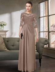 Wholesale  Sheath / Column Mother of the Bride Dress Simple Elegant Jewel Neck Floor Length Chiffon Lace Half Sleeve with Pleats Solid