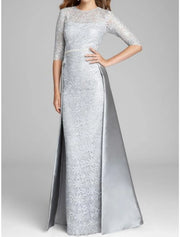 Wholesale Sheath / Column Mother of the Bride Dress Wedding Guest Elegant Jewel Neck Floor Length Satin Lace Half Sleeve with Ruching Solid Color