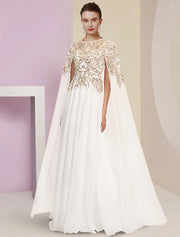 Wholesale Sheath / Column Mother of the Bride Dress Wedding Guest Party Luxurious Jewel Neck Floor Length Chiffon Lace Sequined Long Sleeve with Pleats - US 2 / UK 6 / EU 32