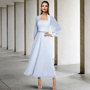 Wholesale Two Piece A-Line Mother of the Bride Dress Church Elegant Square Neck Tea Length Chiffon Short Sleeve Wrap Included with Sash / Ribbon - As picture 1 / US 2 / UK 6 / EU 32