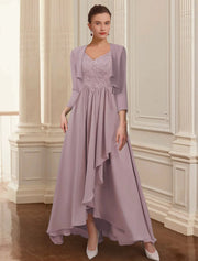 Wholesale Two Piece A-Line Mother of the Bride Dress Formal Wedding Guest Elegant High Low V Neck Asymmetrical Ankle Length Chiffon Lace 3/4 Length Sleeve Jacket Dresses with Appliques - US 2 / UK 6 / EU 32