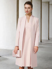 Wholesale Two Piece A-Line Mother of the Bride Dress Wedding Guest Church Elegant V Neck Knee Length Chiffon Short Sleeve Jacket Dresses with Solid Color Fall