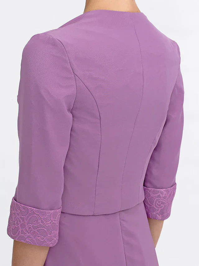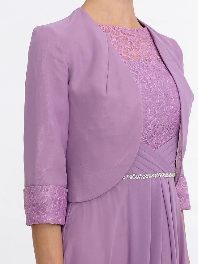 Wholesale Two Piece Ball Gown A-Line Mother of the Bride Dress Formal Church Convertible Dress High Low See Through Illusion Neck Asymmetrical Chiffon Lace 3/4 Length Sleeve with Crystals