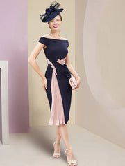Wholesale Two Piece Mother of the Bride Dress Wedding Guest Elegant Jewel Neck Knee Length Stretch Fabric 3/4 Length Sleeve with Pleats Appliques - US 2 / UK 6 / EU 32