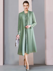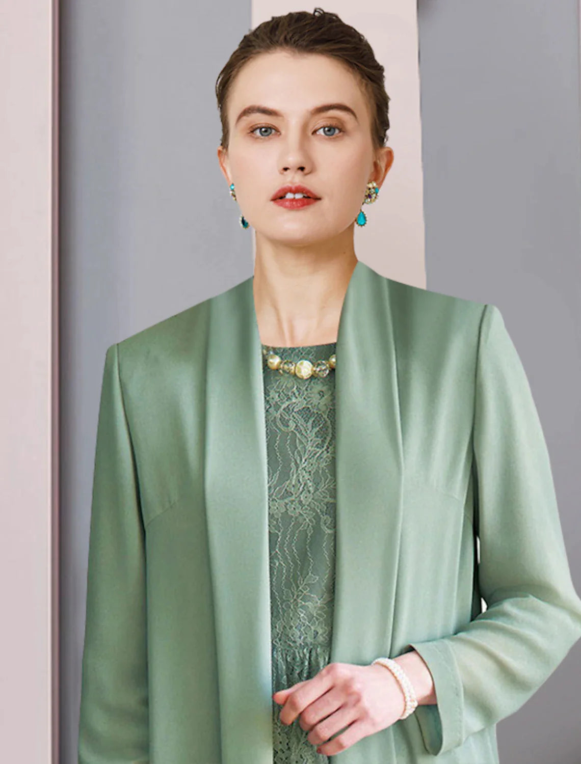 Wholesale Two Piece Sheath / Column Mother of the Bride Dress Formal Wedding Guest Party Elegant Scoop Neck Tea Length Chiffon Lace 3/4 Length Sleeve Jacket Dresses with Solid Color - US 2 / UK 6 / EU 32