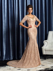 Wholesale V-neck Lace Sleeves Long Elastic Woven Satin Mother of the Bride Dresses - US 2 / UK 6 / EU 32