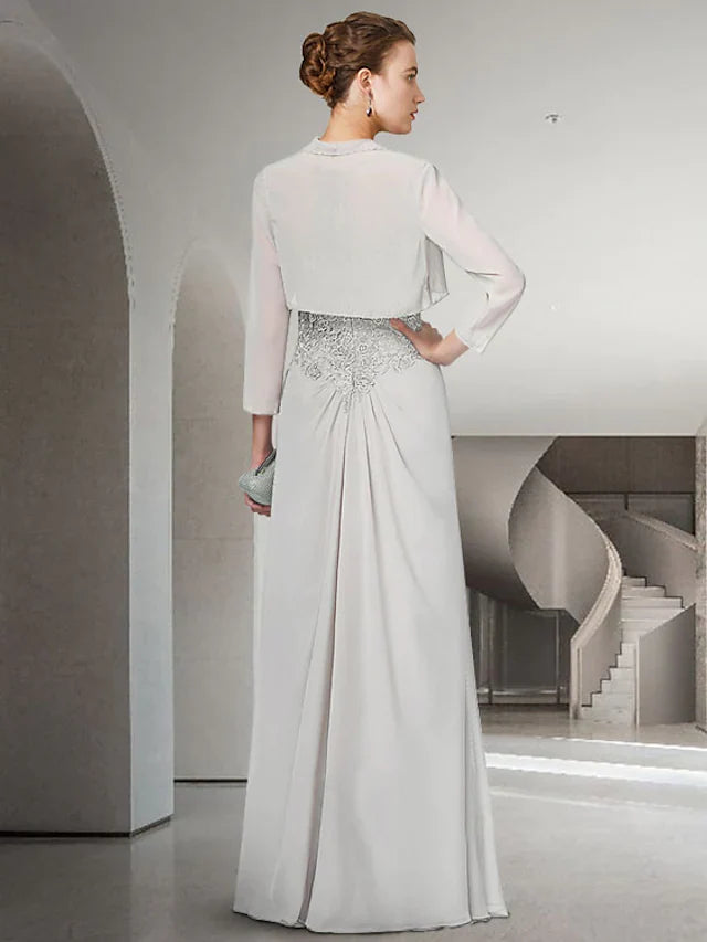 Wholesale Mother of the Bride Dress Elegant Jewel Neck Floor Length Chiffon Lace 3/4 Length Sleeve with AppliquesRegular price $139.99