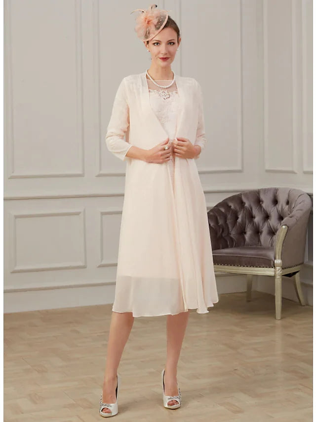 Wholesale Mother of the Bride Dress Elegant Jewel Neck Knee Length Chiffon Lace Half Sleeve with Beading RufflesRegular price $139.99
