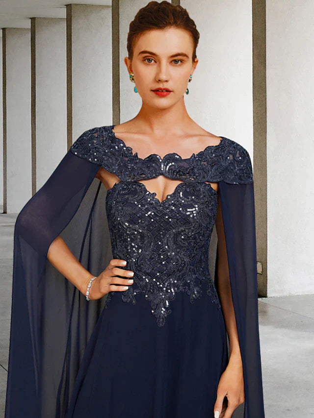 Wholesale Two Piece A-Line Mother of the Bride Dress Elegant Spaghetti Strap Floor Length Chiffon Lace 3/4 Length Sleeve Wrap Included with EmbroideryRegular price $138.55