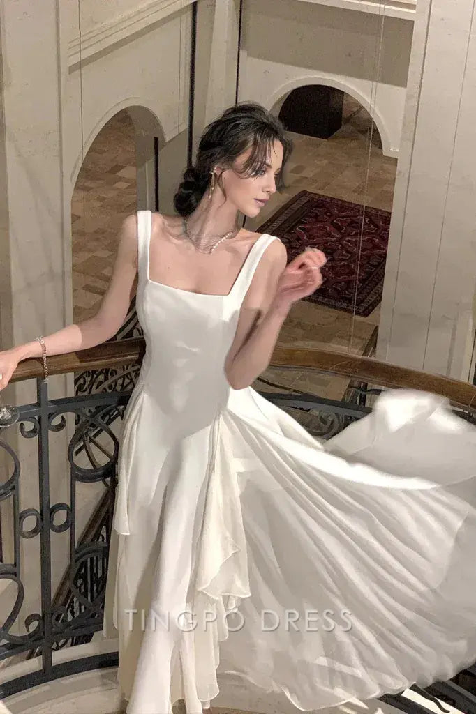 TingPo Wholesale A Line Square Neck Prom Dress Elegant Evening Gown