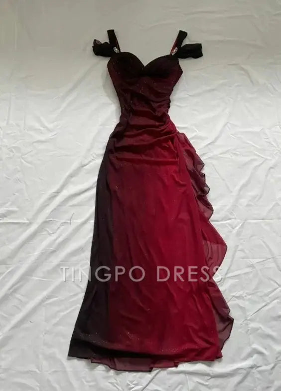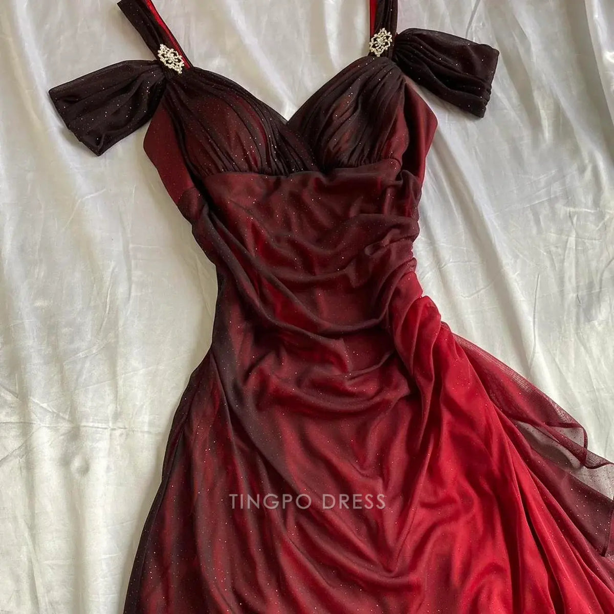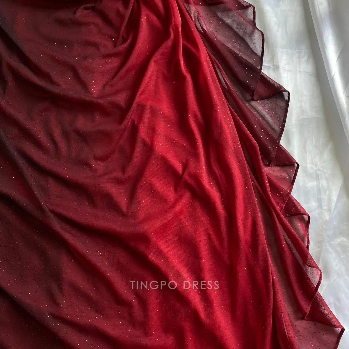 TingPo Wholesale Beautiful A line Straps Ombre Red Long Chiffon Prom Dress
