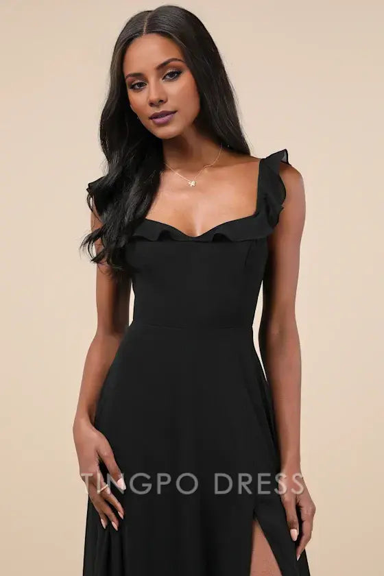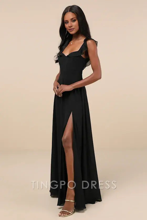 TingPo Wholesale Dreamy Admiration Black Ruffled Maxi Dress formal wear dresses
