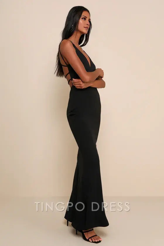 TingPo Wholesale Signature Elegance All this Allure Black Strappy Backless Mermaid Maxi Dress formal wear dresses
