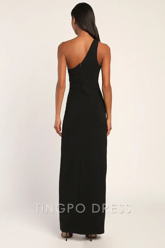 TingPo Wholesale Signature Elegance Show-Stopping Style Black One-Shoulder Cutout Maxi Dress formal wear dresses