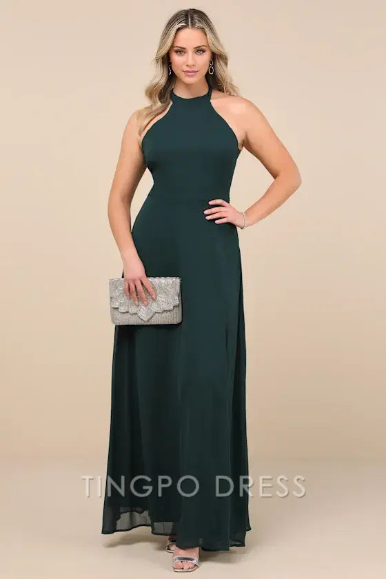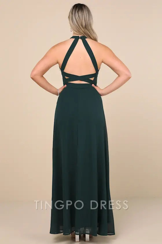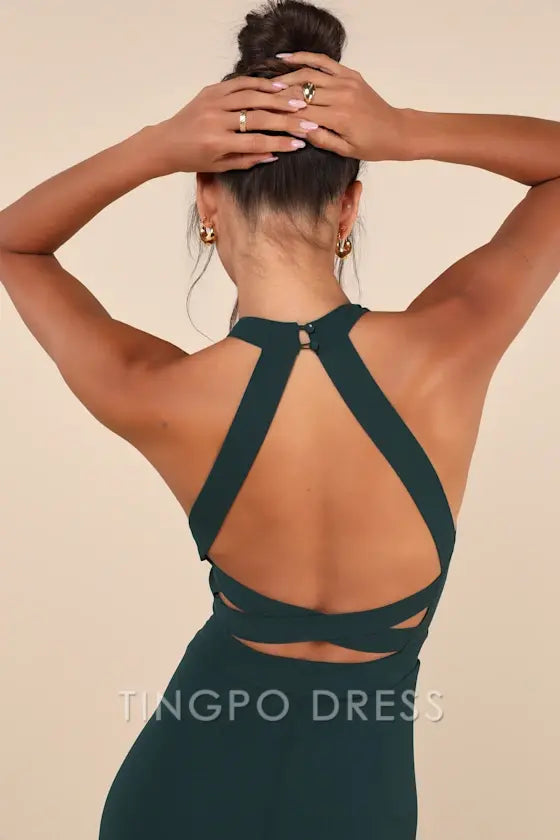 TingPo Wholesale Signature Elegance Confidently Charismatic Emerald Backless Halter Maxi Dress formal wear dresses