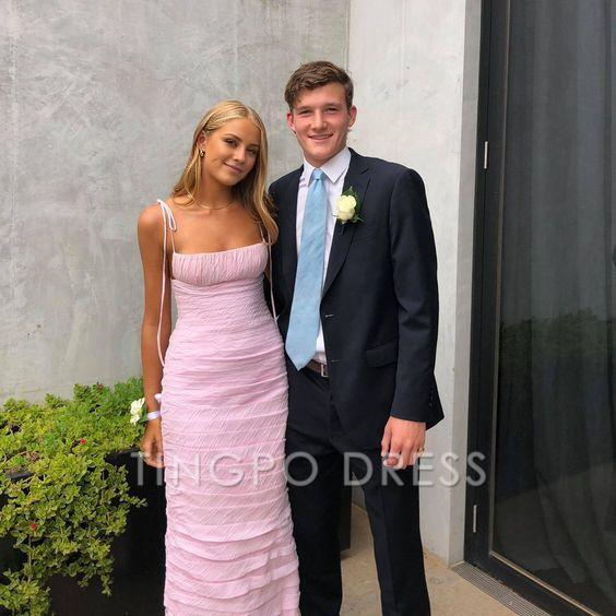 TingPo Wholesale Simple Mermaid Spaghetti Straps Floor Length Sleeveless Pink Prom Dress