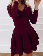 Wholesale A-Line Cocktail Dresses Christmas Red Green Dress Wedding Guest Homecoming Short / Mini Long Sleeve V Neck Spandex with Pleats Pure Color - Burgundy / US 2 / UK 6 / EU 32