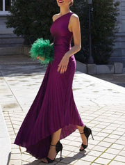 Wholesale A-Line Party Dresses Elegant Dress Wedding Wedding Guest Asymmetrical Sleeveless One Shoulder Polyester with Ruched - US 2 / UK 6 / EU 32