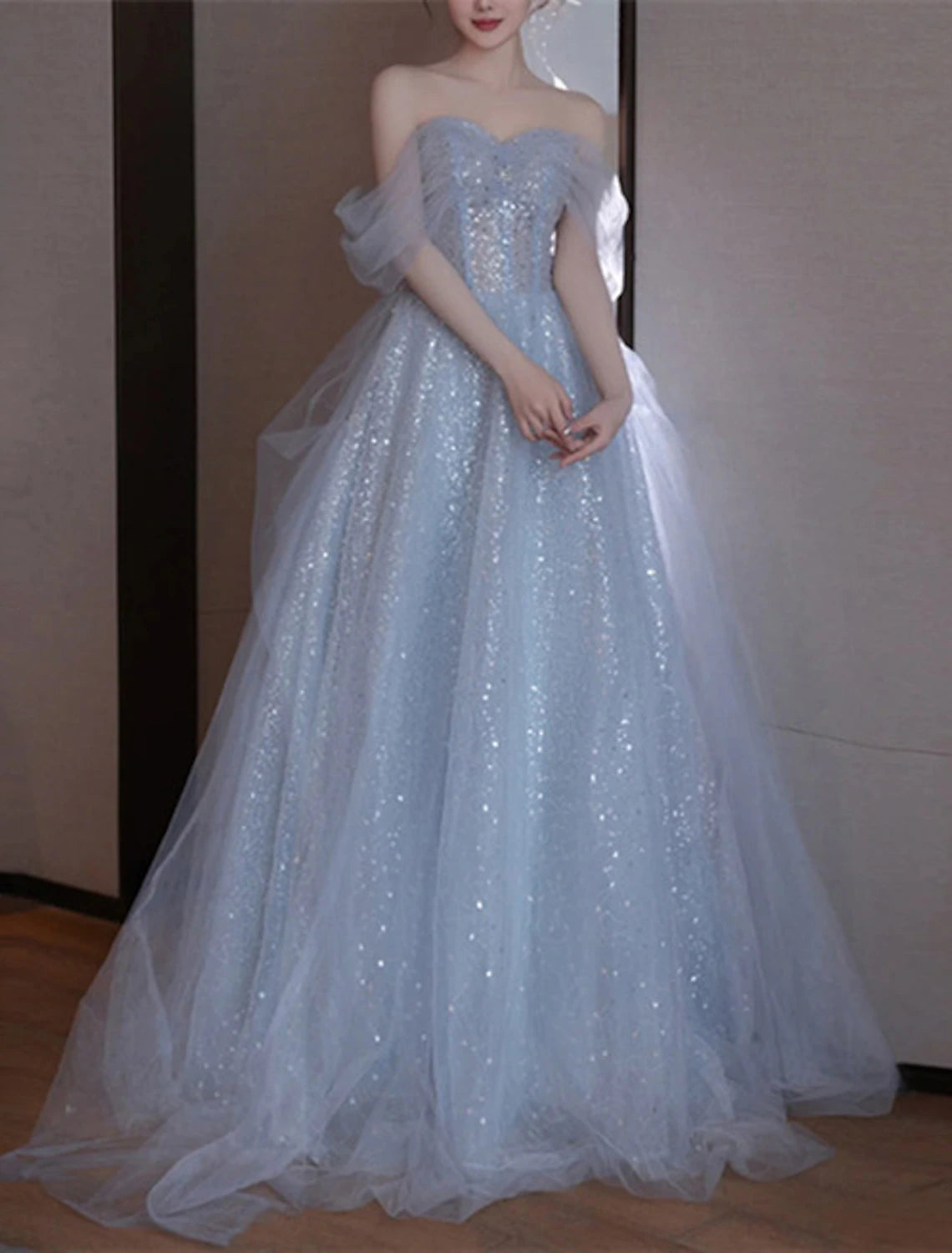 Wholesale A-Line Party Dresses Sparkle & Shine Dress Wedding Guest Prom Floor Length Sleeveless Off Shoulder Sequined with Sequin