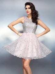 Wholesale A-Line/Princess Bateau Beading Sleeveless Short Satin Cocktail Dresses