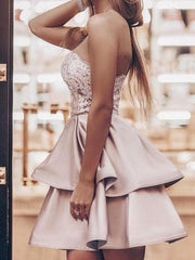 Wholesale A-Line/Princess Satin Applique Strapless Sleeveless Short/Mini Homecoming Dresses - Champagne / US 2 / UK 6 / EU 32