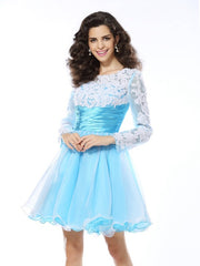 Wholesale A-Line/Princess Scoop Applique Long Sleeves Short Elastic Woven Satin Cocktail Dresses - US 2 / UK 6 / EU 32