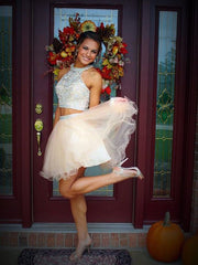 Wholesale A-Line/Princess Scoop Beading Sleeveless Short/Mini Tulle Two Piece Dresses - US 2 / UK 6 / EU 32