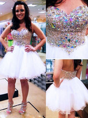Wholesale A-Line/Princess Sleeveless Sweetheart Beading Tulle Short/Mini Dresses - US 2 / UK 6 / EU 32