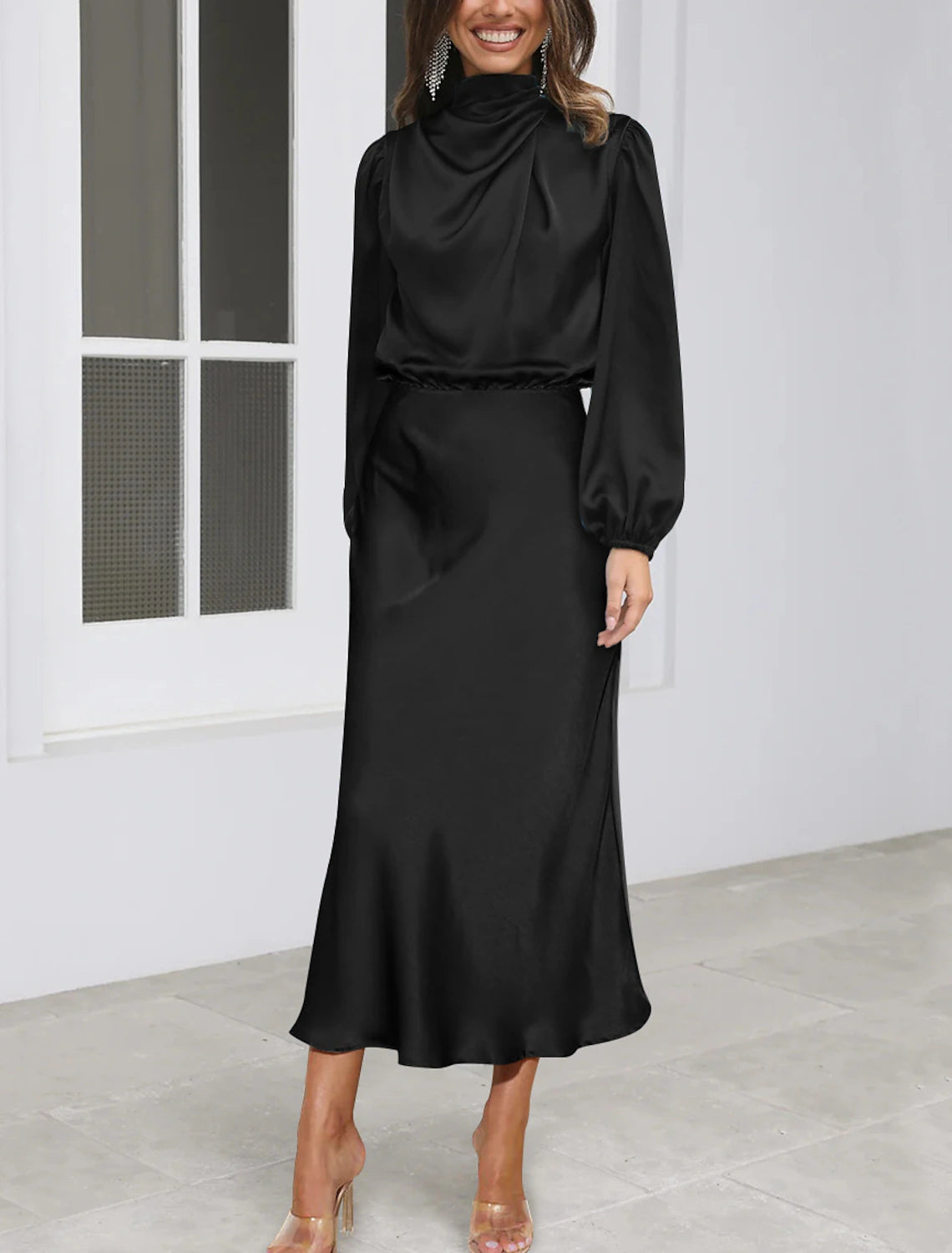 Wholesale Champagne Green Pink Mermaid / Trumpet Party Dresses Vintage Dress Birthday Ankle Length Long Sleeve High Neck Fall Wedding Reception Stretch Satin