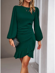 Wholesale Mermaid Dress Christmas Red Green Dresses Christmas Red Green Dress Wedding Guest Birthday Short / Mini Long Sleeve Jewel Neck Polyester with Ruched Ruffles - Green Black / US 2 / UK 6 / EU 32