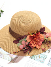 Wholesale Hats Headwear Straw Hats Straw Bucket Hat Straw Hat Sun Hat Casual Holiday Beach Kentucky Derby Melbourne Cup Vintage Style Elegant With Appliques Flower Headpiece Headwear