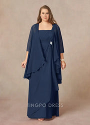 TingPo Wholesale Elegant Plus Size Mother of the Bride Dresses Dark Navy A-Line Square Neckline Pleated Chiffon Dress hot sale for ladies