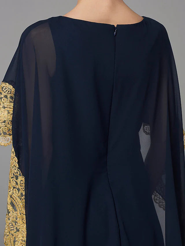 Wholesale A-Line Mother of the Bride Dress Plus Size Elegant Bateau Neck Sweep / Brush Train Chiffon Sleeveless with Lace - US 2 / UK 6 / EU 32