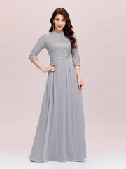 Wholesale A-Line Mother of the Bride Dress Plus Size Elegant Jewel Neck Floor Length Chiffon Lace Length Sleeve with Lace - US 2 / UK 6 / EU 32